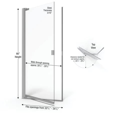 - Enclosure Width Range: 32-3/4″ to 34-1/4″ (range of enclosure sizes door will accommodate)