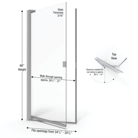 - Enclosure Width Range: 34-1/8″ to 35-5/8″ (range of enclosure sizes door will accommodate)