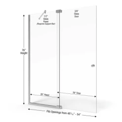 - Door Openings: 48-1/16″ to 54″ (range of finished openings door will accommodate)