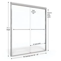 - Door Openings: 56″ to 60″ (range of finished openings door will accommodate)