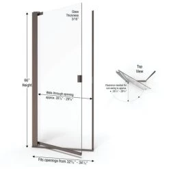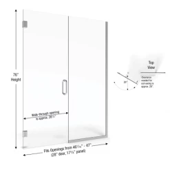 - NOTE: The biggest challenge in selecting the correct shower door is determining the finished opening width – be sure your desired opening measures between the “Trim-able to Door Openings” note below