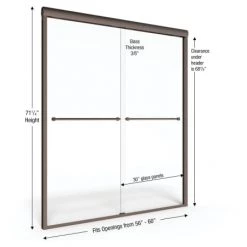 - Door Openings: 56″ to 60″ (range of finished openings door will accommodate)