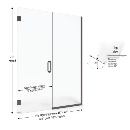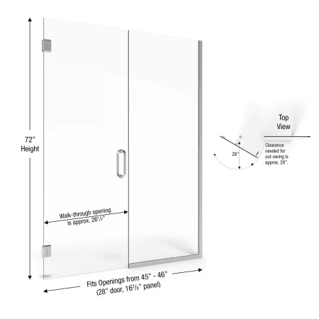- Door Openings: 45″ to 46″ (range of finished openings door will accommodate)
