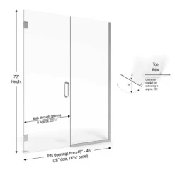 - NOTE: The biggest challenge in selecting the correct shower door is determining the finished opening width – be sure your desired opening measures between the “Trim-able to Door Openings” note below.
