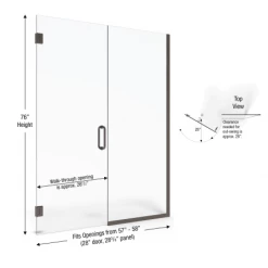 - NOTE: The biggest challenge in selecting the correct shower door is determining the finished opening width – be sure your desired opening measures between the “Trim-able to Door Openings” note below.