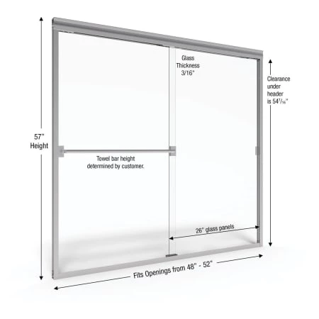 - Door Opening(s): 48″ to 52″ (range of finished openings door will accommodate)