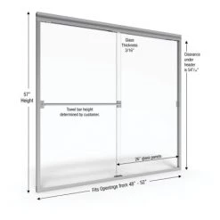 - NOTE: The biggest challenge in selecting the correct shower door is determining the finished opening width – be sure your desired opening measures between the “Trim-able to Door Openings” note below