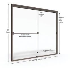 - Enclosure Width Range: 54″ to 60″ (range of enclosure sizes door will accommodate)