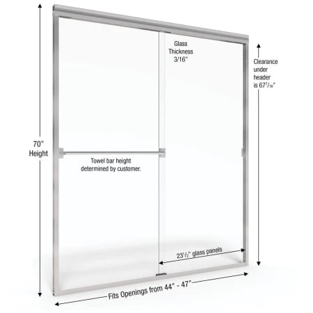 - Door Openings: 44″ to 47″ (range of finished openings door will accommodate)