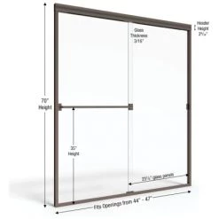 - Door Openings: 44″ to 47″ (range of finished openings door will accommodate)