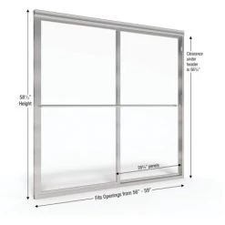 - Enclosure Width Range: 56″ to 59″ (range of enclosure sizes door will accommodate)
