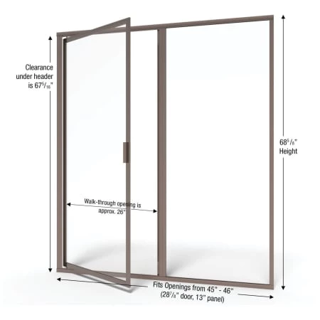 - Door Openings: 45″ to 46″ (range of finished openings door will accommodate)