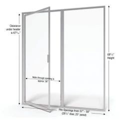 - Door Openings: 57″ to 58″ (range of finished openings door will accommodate)