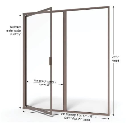 - Door Openings: 57″ to 58″ (range of finished openings door will accommodate)