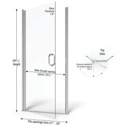 - NOTE: The biggest challenge in selecting the correct shower door is determining the finished opening width – be sure your desired opening measures between the “Trim-able to Door Openings” note below