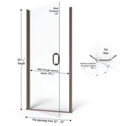 - NOTE: The biggest challenge in selecting the correct shower door is determining the finished opening width – be sure your desired opening measures between the “Trim-able to Door Openings” note below