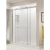 The Infinity glass shower enclosure proves that less is more with its frameless bypass glass panels. The quarter-inch thick glass features polished edges and showcases two through the glass towel bars. Your safety is ensured with an insert in the header that keeps the panels secure. Moderate DIY Skills are recommended for installation of the shower enclosure.