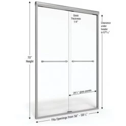 - Enclosure Width Range: 56″ to 58-1/2″ (range of enclosure sizes door will accommodate)