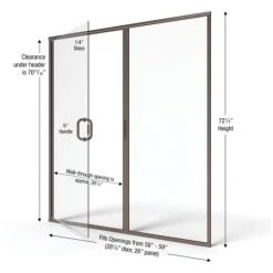 - Door Openings: 58″ to 59″ (range of finished openings door will accommodate)