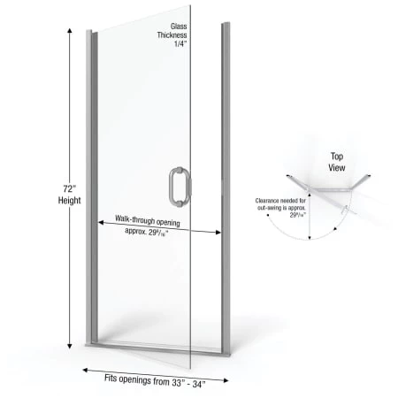 - Door Openings: 33″ to 34″ (range of finished openings door will accommodate)