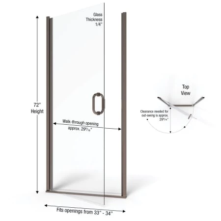 - Door Openings: 33″ to 34″ (range of finished openings door will accommodate)