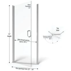 - NOTE: The biggest challenge in selecting the correct shower door is determining the finished opening width – be sure your desired opening measures between the “Trim-able to Door Openings” note below
