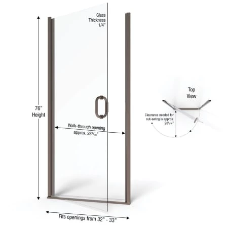 - Door Openings: 32″ to 33″ (range of finished openings door will accommodate)