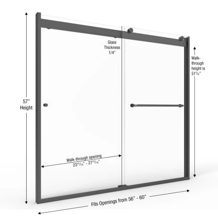 - Enclosure Width Range: 56″ to 60″ (range of enclosure sizes door will accommodate)
