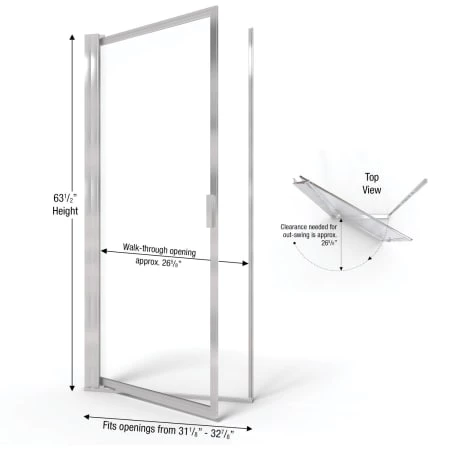 - Enclosure Width Range: 31-1/8″ to 32-7/8″ (range of enclosure sizes door will accommodate)