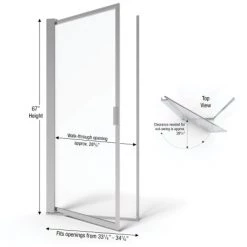 - Enclosure Width Range: 33-1/8″ to 34-7/8″ (range of enclosure sizes door will accommodate)